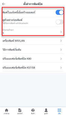 - ดูตัวอย่างก่อนพิมพ์ (ใช้กับการพิมพ์ Wifi/Bluetooth): คุณเปิดใช้งานไอคอน