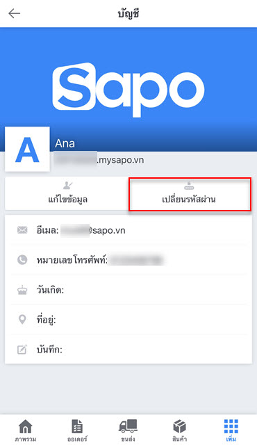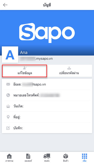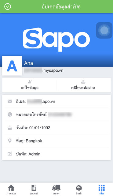 - บัญชีแอดมิน: โปรดส่งความต้องการแก้ไขข้อมูลไปที่อีเมล support@sapogo.com เจ้าหน้าที่ของ Sapo จะติดต่อตามข้อมูลในสัญญาเพื่อทำการยืนยันและสนับสนุน