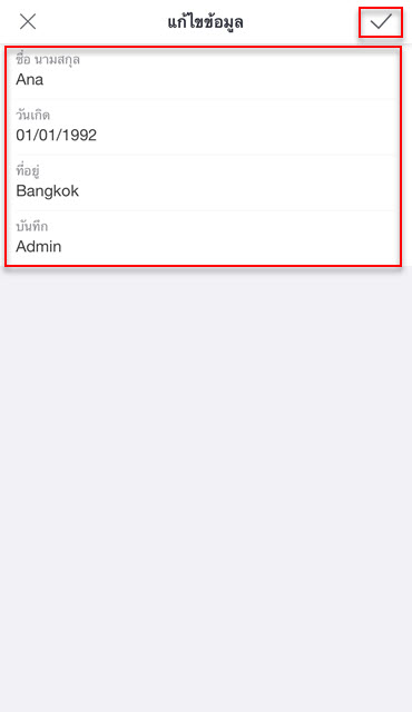 (มุมขวาบนของหน้าจอแก้ไขข้อมูล) เพื่อบันทึก